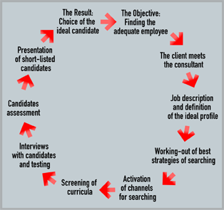 As shows the diagram on the right, the final result of the search and selection process coincides with the objective put forward by the client: the selection of the ideal candidate.